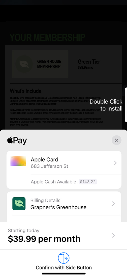 Include billing details, terms and conditions, and more in the Apple Pay payment sheet. These fields are designed to let people review essential information before completing the Apple Pay transaction, potentially helping decrease cart abandonment and increase overall conversion rates.