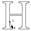 The grid-fitting instructions for the H necessarily refer to the outline points that make up the glyph description. Figure 11 shows the upper case H outline along with the on-curve and off-curve points that define that outline. The instructions for this glyph follow. Each instruction is accompanied by an explanation of the work it does and, if relevant, an illustration of the points it affects or uses.The instructions begin with the x-direction, the default direction for the freedom and projection vectors.The work of instructing the glyph proceeds from left to right. Instructions80% in the y-direction follow.