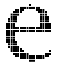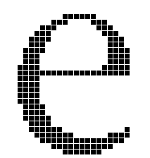 As size and resolution increase, legibility will improve but elegance and fidelity to the original design remain at issue even at relatively high numbers of pixels per em. This problem is illustrated in Figure 4. Here, the bitmap produced by dumb rasterization (left) is legible but inelegant. Among the more glaring problems are the widowed pixel at the top of the e, the jagged shape of the lower curve, and the poor appearance of the counter.