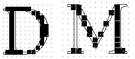 The TrueType language seeks to remedy the problems caused by the accidents of rasterization by deforming a glyph outline before rasterization so that the "right" pixels are turned on. This technique, illustrated in Figure 5, is called "grid-fitting" the outline. Here the darker outline imposed on the lighter master outline is represents the outline that will be rasterized to produce the final output bits used to represent the glyph.