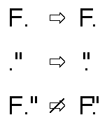 You can use information in the font tables to determine how much to increase or decrease the space between two glyphs. This amount can depend on more than just the two adjacent glyphs: it can also depend on preceding or following glyphs. For example, you can kern the first two pairs of glyphs in the following figure, but if you applied the same distances in the third pair, you would have the quotation mark colliding with the top stem of the "F." Your kerning data can compensate for this and provide a different kerning amount in cases like this.