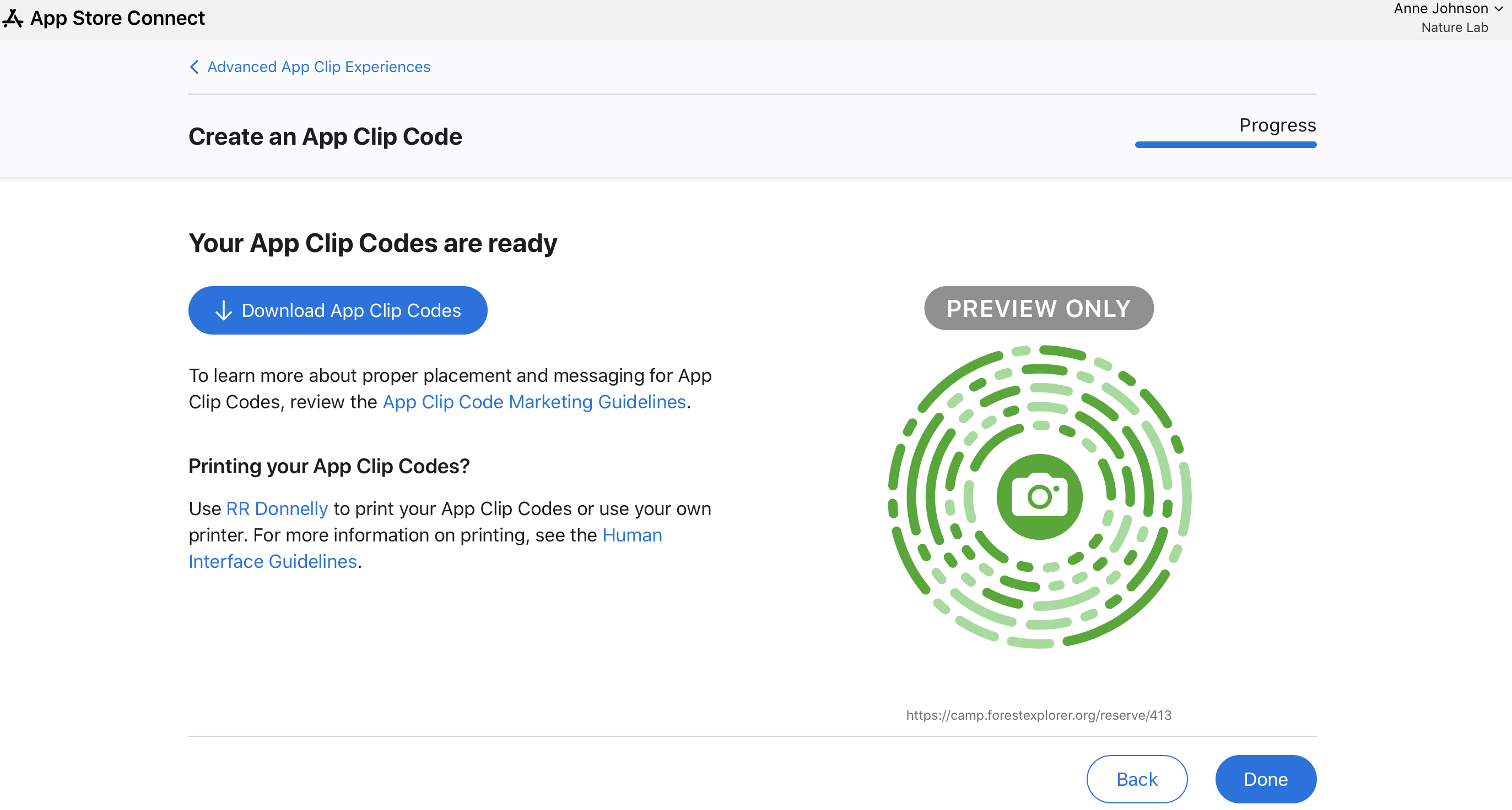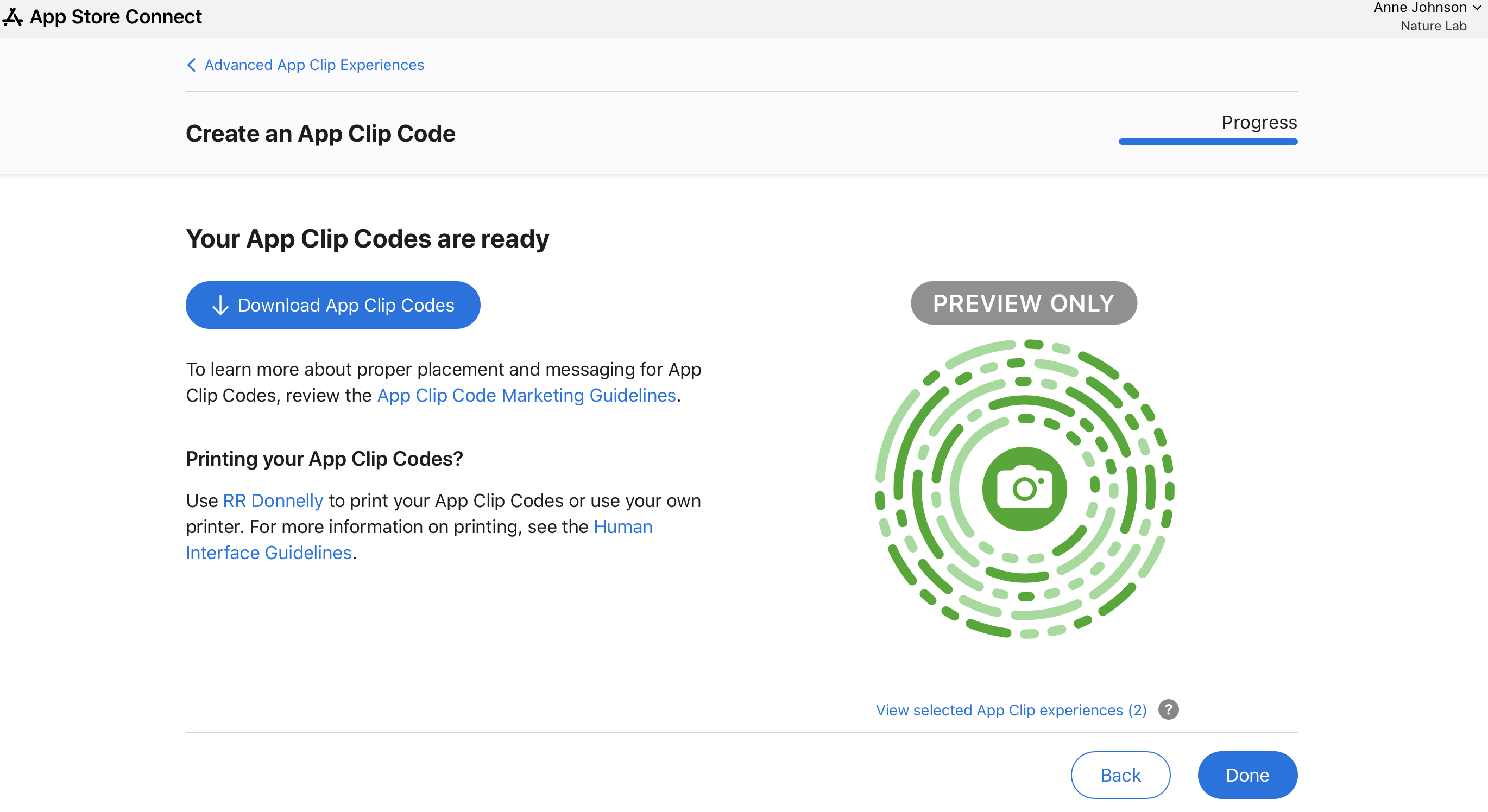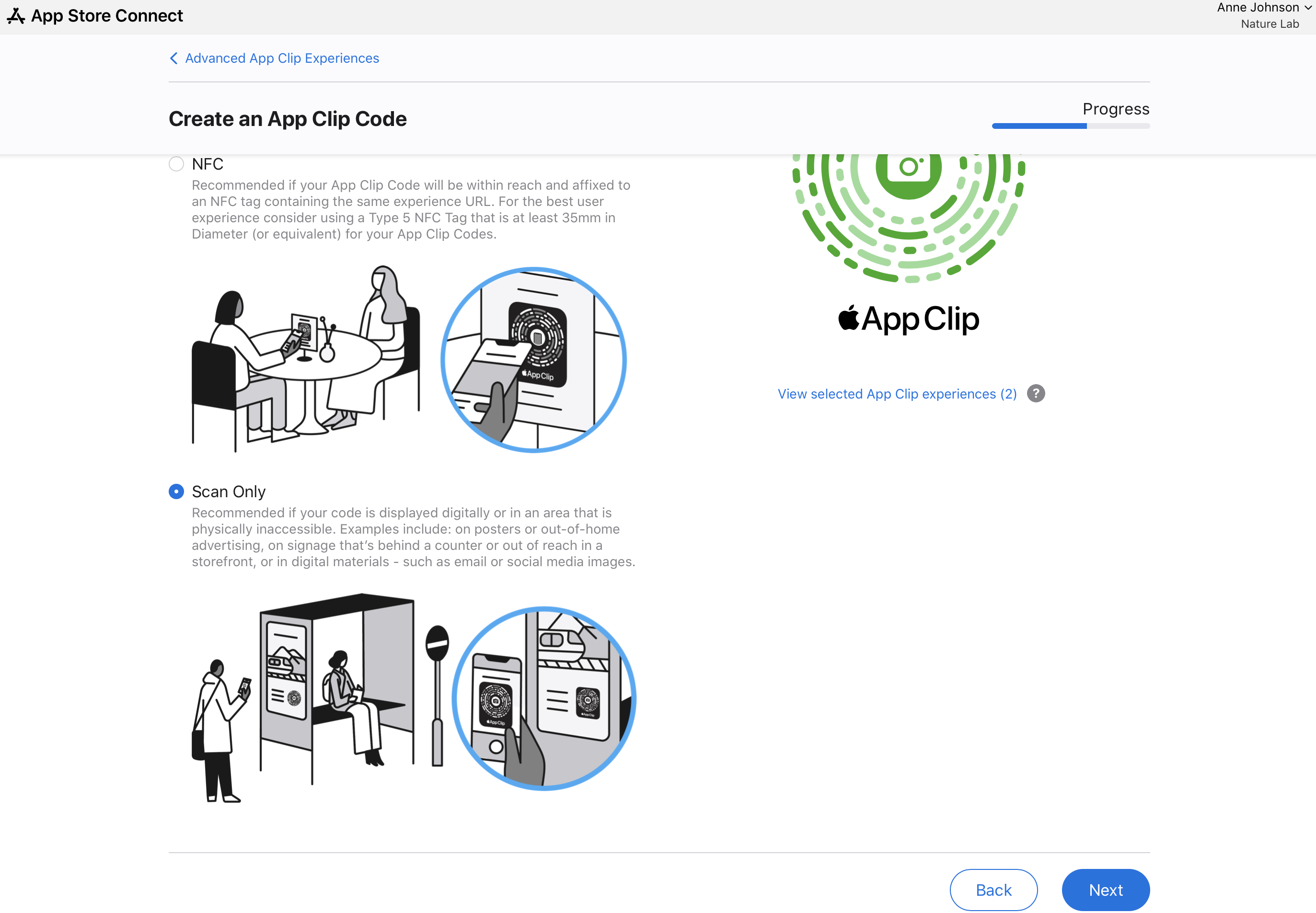 App Store Connect Offer App Clip experiences Generate App Clip codes