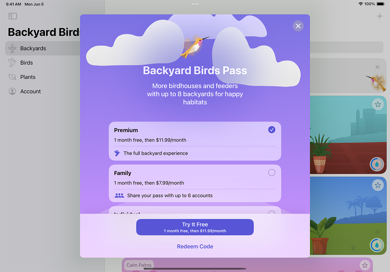 It’s easy to build intuitive payment experiences for In-App Purchases and subscriptions using StoreKit views. With as little as one line of code, StoreKit views clearly present the description, price, and duration for each level of service. And with built-in localization support, In-App Purchase details are displayed in the relevant language and currency, without any extra development work. You can also customize StoreKit views to match the look and feel of your app.