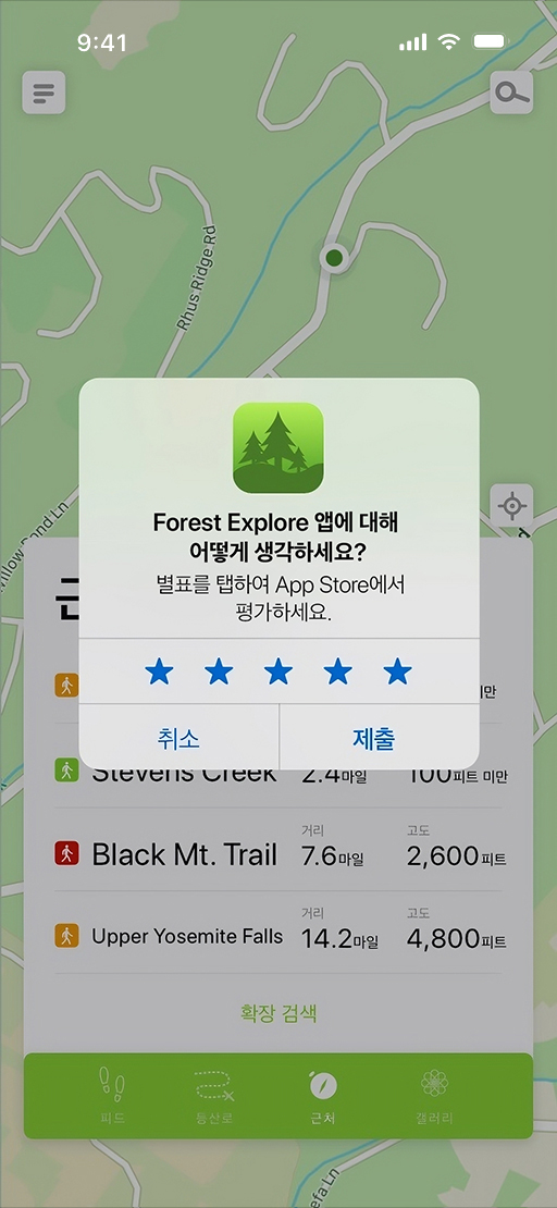 리뷰 작성은 사용자들이 앱 사용 경험을 더 자세히 공유할 수 있도록 도와줍니다. 사용자는 각 기기의 앱 제품 페이지에서 iOS, iPadOS, macOS, visionOS 앱에 대한 리뷰를 작성하고 iOS 기기에서 watchOS 앱 관련 리뷰를 작성할 수 있습니다. 요약 평점 초기화를 선택해도 작성된 리뷰는 계속해서 제품 페이지에 표시됩니다.