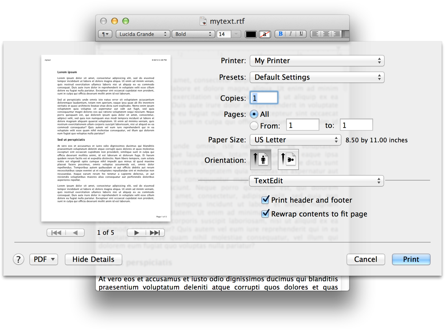 By default, an NSPrintOperation object object displays a Print panel allowing the user to select printing options, such as number of copies to print and range of pages to print. After the user chooses options for the first time, you might want to offer the user the ability to bypass the Print panel and print immediately using the previous print settings.