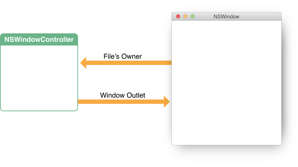 An NSWindowController object manages one window associated with a document. That window is typically stored in a nib file. As such, in the MVC design pattern, it is a view controller. When an NSWindowController object receives a request from its owning NSDocument object, it loads the nib file containing a window, displays the window, and sets itself as the File’s Owner of the nib file. It also assumes responsibility for closing windows properly.