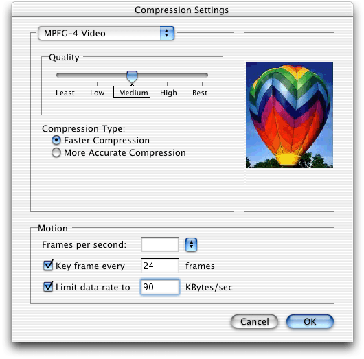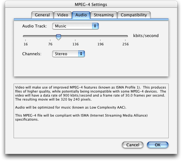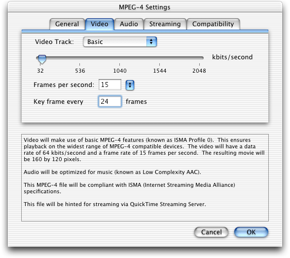 QuickTime 6 also supports use of the MPEG-4 video and AAC audio codecs in QuickTime movies. In many cases, you can choose to create either a native