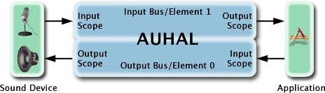 AUHAL (output scope, element 1) | AUHAL (input scope, element 0) |