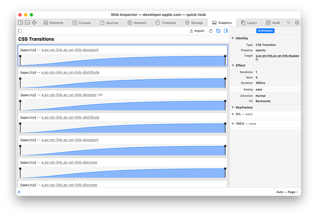 Graphics. Preview animation keyframes and their classes from HTML5 canvas, JavaScript animations, CSS animations, and CSS transitions. Dial in the motion and the visual design of web pages.