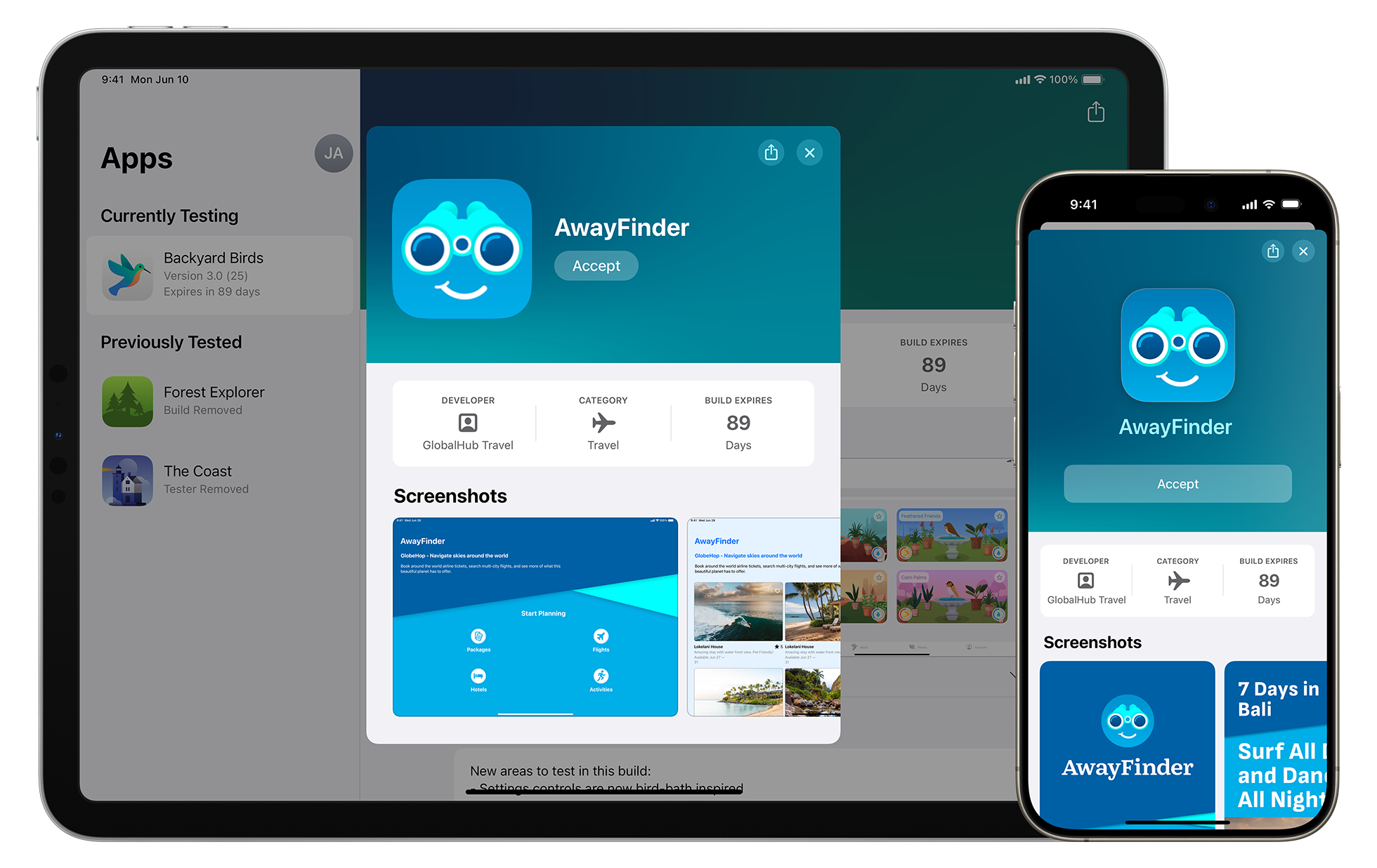 TestFlight makes it easy for testers to give feedback on your apps, games, and App Clips across Apple platforms before you publish. Share your beta with just your team, or the public. Learn how to get started with TestFlight.