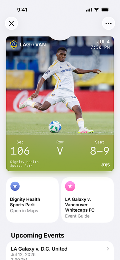 Users can use passes in Wallet on iPhone and Apple Watch. Passes can display on the Lock Screen at the right time, like when the user reaches the airport or walks into a store.