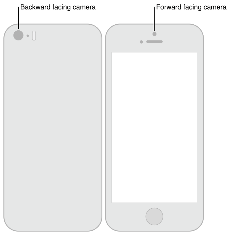 Figure 4-3 shows the positions of the back-facing (AVCaptureDevicePositionBack) and front-facing (AVCaptureDevicePositionFront) cameras.