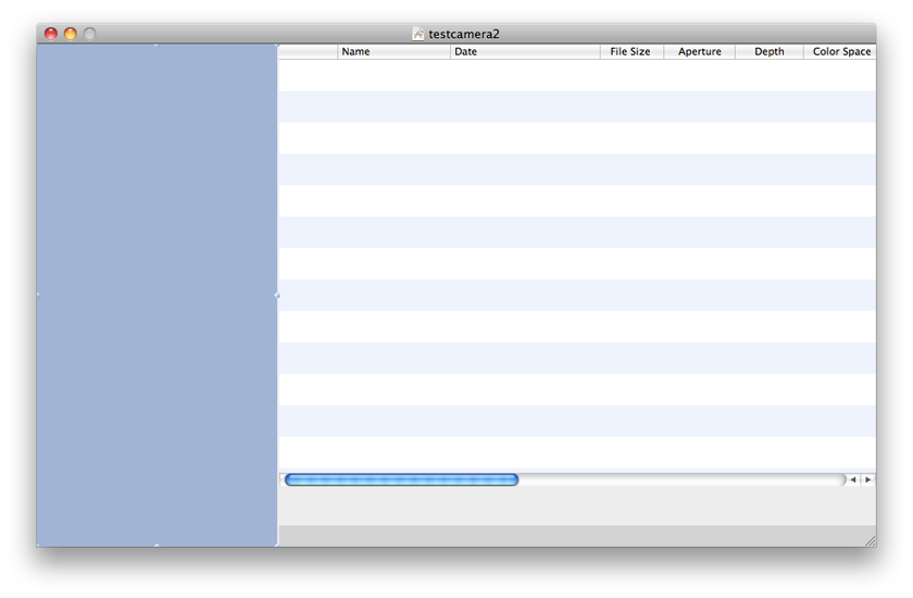 Drag a Device Browser View into the left half of your window and size it as desired. Drag a Camera View into your window alongside your browser view and size it as desired. Your window should look something like Figure 2-3. The device browser view is the blue rectangle on the left, and the camera view is the blue-and-white striped area on the right.