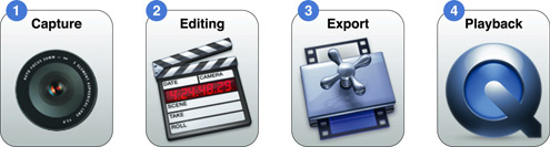 You can use the methods and classes in the QTKit API to accomplish a number of essential media programming tasks, shown graphically in Figure 1-3. At the basic level, the QTKit API lets you: