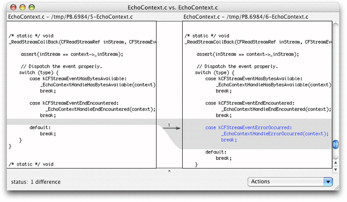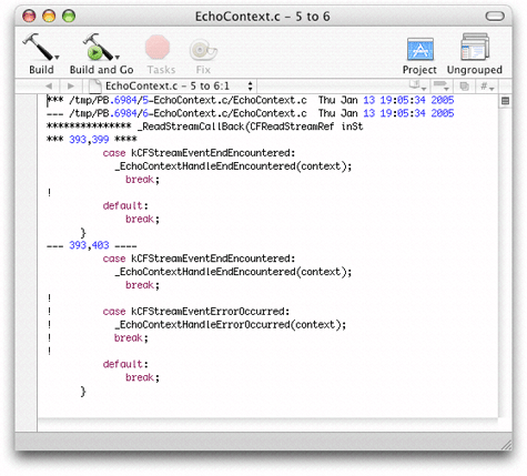 of your client tool. Xcode displays the output of the diff command