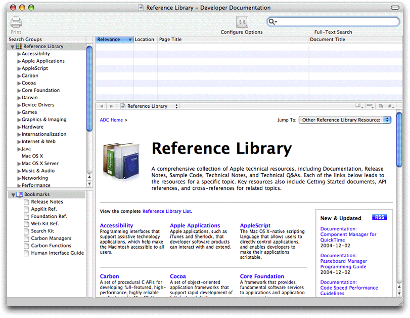 If Xcode is running when the installation is successfully completed, Xcode notifies you that the documentation has been updated. Click OK to reload the Search Groups and ADC Reference Library entry page in the documentation window. Otherwise, Xcode loads the new documentation when it next launches.