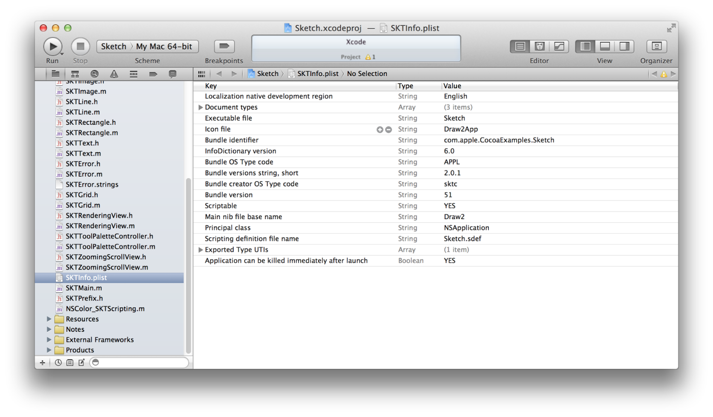 Xcode automatically adds some important keys to the Info.plist file of all new projects and sets their initial values. However, there are several keys that Mac apps use commonly to configure their launch environment and runtime behavior. Here are some keys that you might want to add to your app’s Info.plist file specifically for OS X: