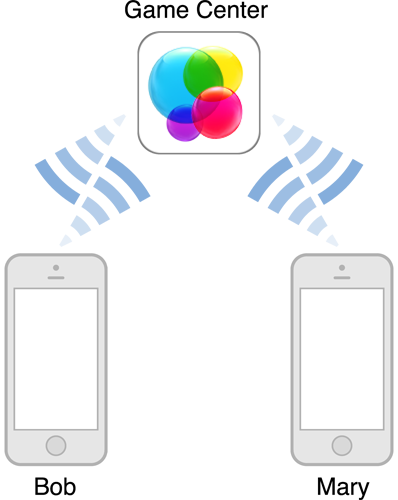 When you design your game, you’ll find that your game is often aware of multiple players at the same time. For example, if you design a game using multiplayer networking, then you have information—and a player identifier—for each player in the match. However, on any particular device, one player always takes precedence over other players. The local player is the player that is currently authenticated to play on that device. In Figure 3-1, two players are connected in a network match. On the left device, Bob is the local player and Mary is a remote player. On the right device, Mary is the local player and Bob is a remote player.