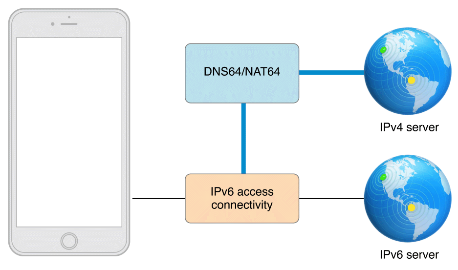 With IPv4 address pool exhaustion imminent, enterprise and cellular providers are increasingly deploying IPv6 DNS64 and NAT64 networks. A DNS64/NAT64 network is an IPv6-only network that continues to provide access to IPv4 content through translation. Depending on the nature of your app, the transition has different implications: