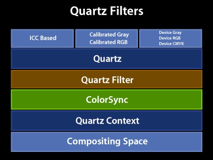 In simple terms, Quartz color management can be described as being built around ColorSync, which is used as an engine to process PDF color data produced by Quartz.