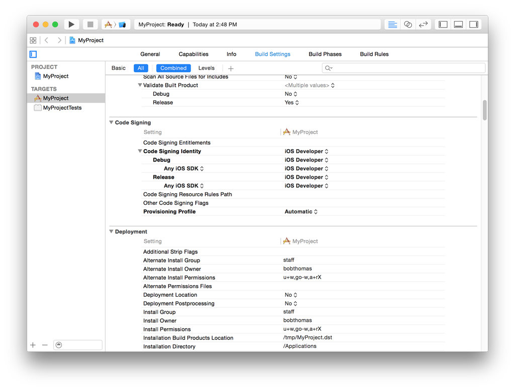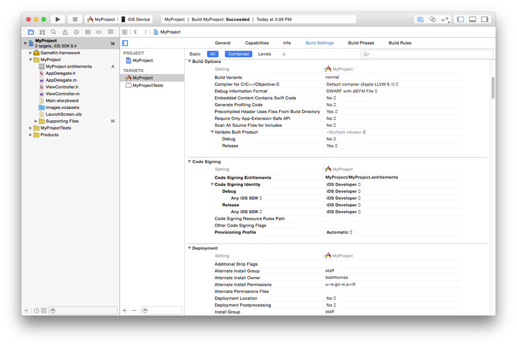 Figure 7  Correctly configured Code Signing build settings.